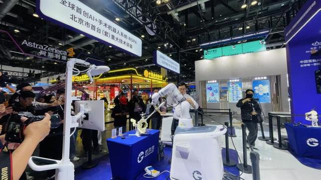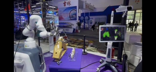 在长木谷医疗展台,全球首创的人工智能+全骨科手术机器人ROPA正在给一个人类模型做“膝关节置换手术”,向观众直观展示工作场景。据介绍,全骨科手术机器人ROPA还可以做脊柱、创伤、关节、运动医学等辅助的治疗。