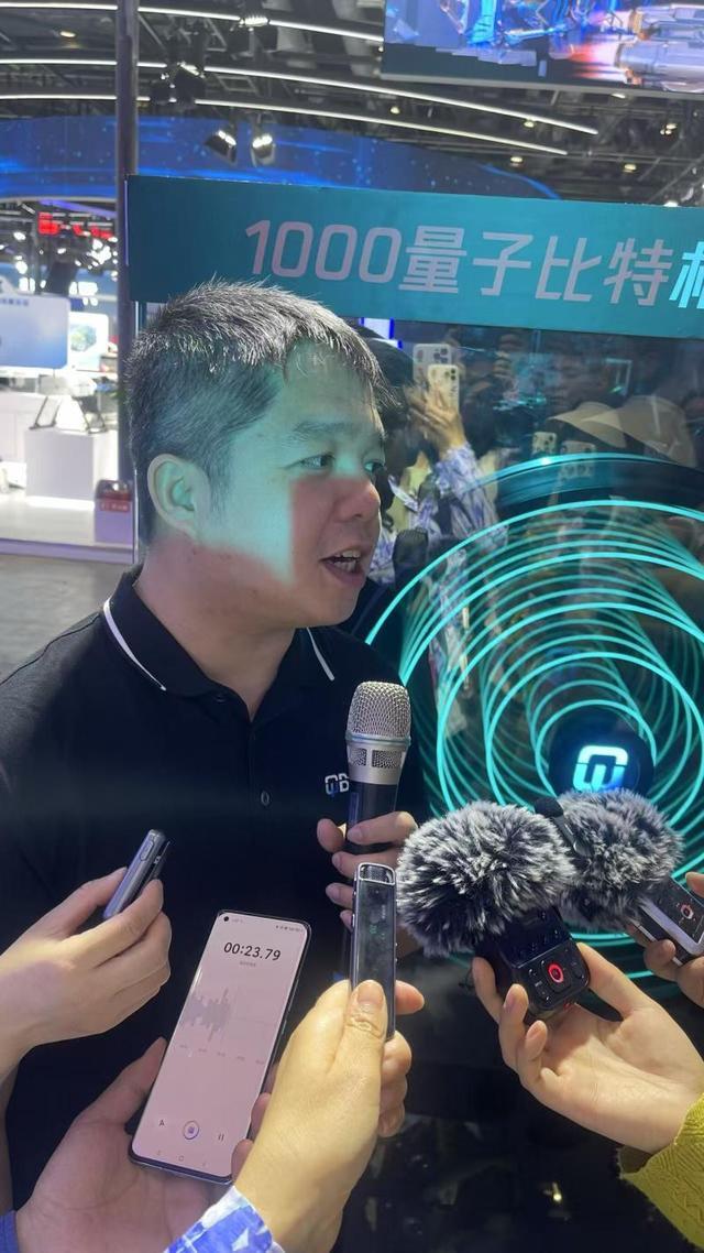 在北京玻色量子科技有限公司展台,首次展出的1000量子比特相干光量子计算机是国内首个突破千比特规模的光量子计算机。