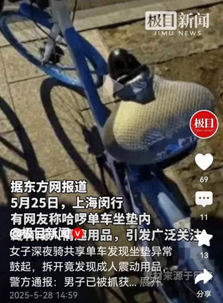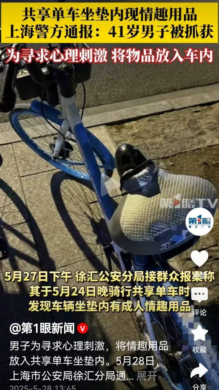做人做事应该有个道德尺度,你喜欢那个东西无可厚非,干嘛放在共享单车的车座垫子下面?这被网民举报了,在道德层面说不过去啊!你把这个物品故意放置在这儿,让女士骑上它是何感受?