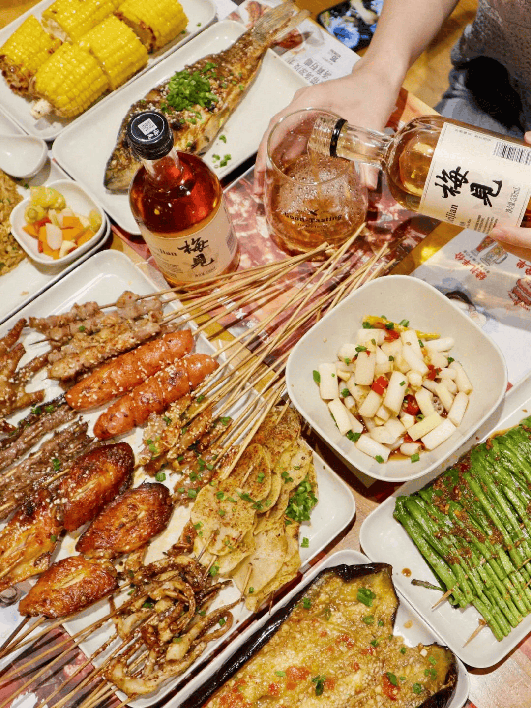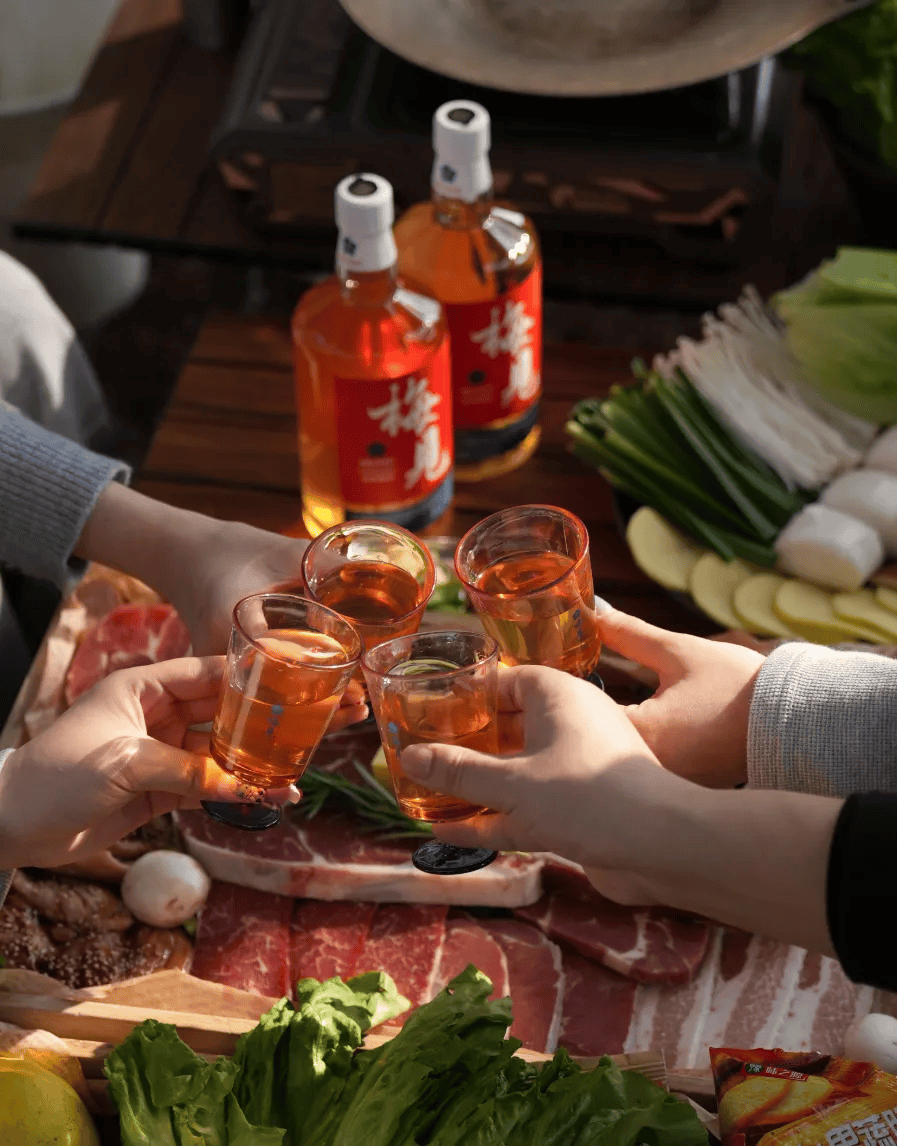 更多年轻人的聚会场景,你也能发现餐桌的变化——火锅店、烧烤店的菜单上出现越来越多的青梅酒,三五好友在碰杯里庆祝生活。