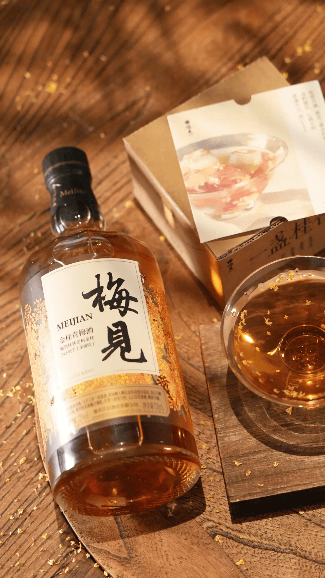 金桂是中国人熟悉的风味,人们是对秋意最直观的体感也同样来自馥郁醇和的桂⼦香,把金桂这一盛行中国数千年的传统风味融入梅酒,这既是梅见一次颇具诚意的东方风味融合创新,也是中国青梅酒再度深入当代年轻人生活场景的一次探索。