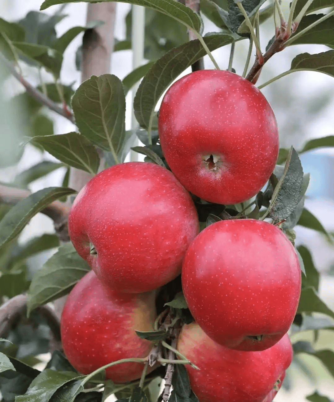 “鲁丽”苹果:“鲁丽”苹果是我国中早熟苹果的代表性新品种,聚合“优质、抗病、耐贮、免袋全红、早果丰产”等优良性状,成功解决了“早熟与优质、早熟与抗病、早熟与耐贮”难以聚合的世界性苹果育种难题,第一个在我国果树领域实现1000万元品种权转让。2016年以来先后通过山东、国家审定,2019年5月24日获得国家植物新品种权,2020年6月19日获得非主要农作物品种登记,被列为农业农村部主导品种,入选国家农作物优良品种推广目录,在山东、陕西、河北、山西、云南、新疆等苹果主产区广泛推广栽培,种植面积56.8万亩,占全国新发展中早熟苹果的50%以上,已成为我国主栽苹果品种之一。